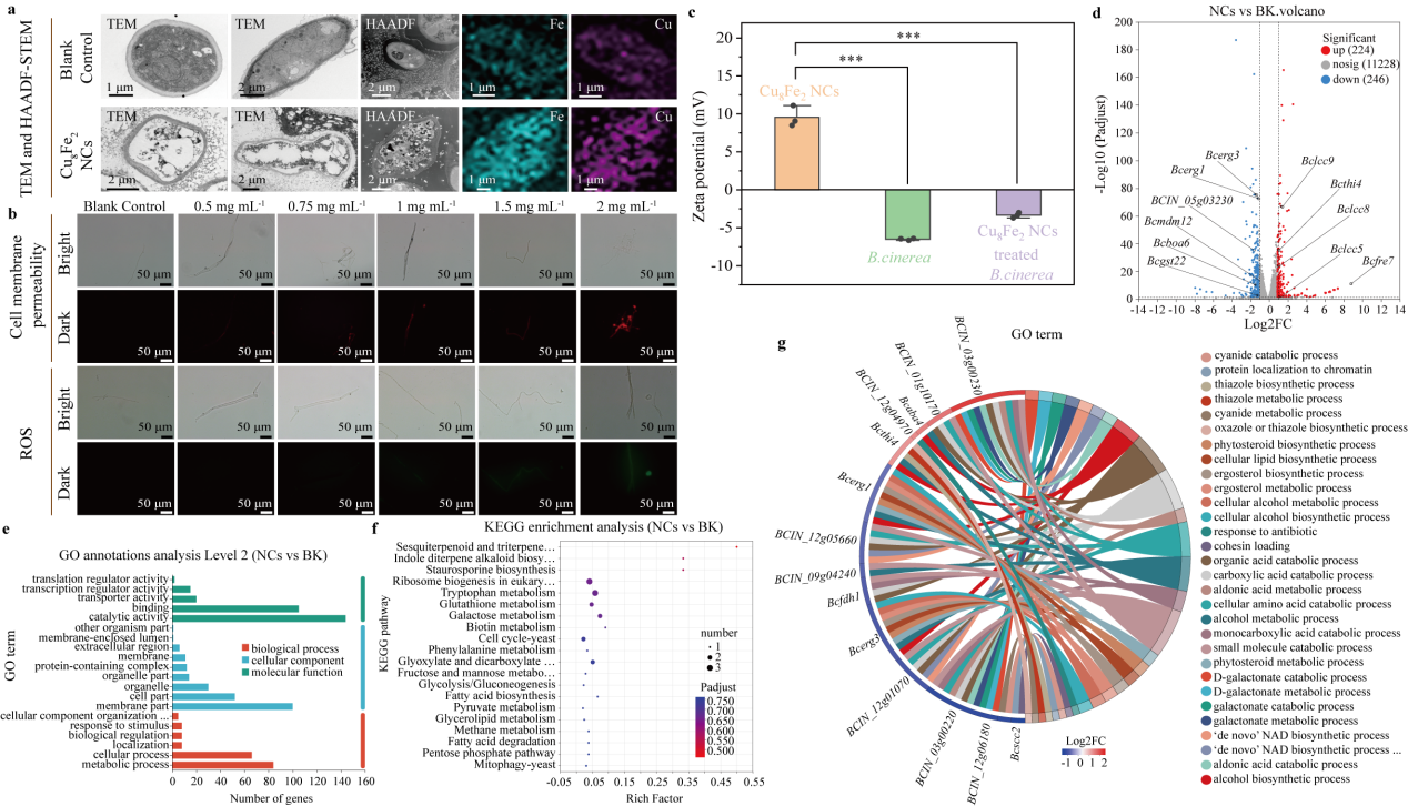 图3. CuFe NCs对灰葡萄孢菌生长的抑制活性及其作用机制