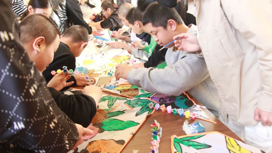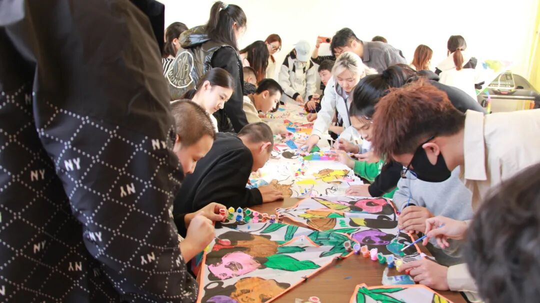 制作风筝过程中,志愿者们耐心地指导孩子们绘制风筝图案,鼓励他们发挥想象力,用手中的画笔描绘出心中的色彩。孩子们专注地在风筝上涂抹着,有的画了可爱的小动物,有的画了五彩的花朵,每一幅作品都充满了童真与梦想。