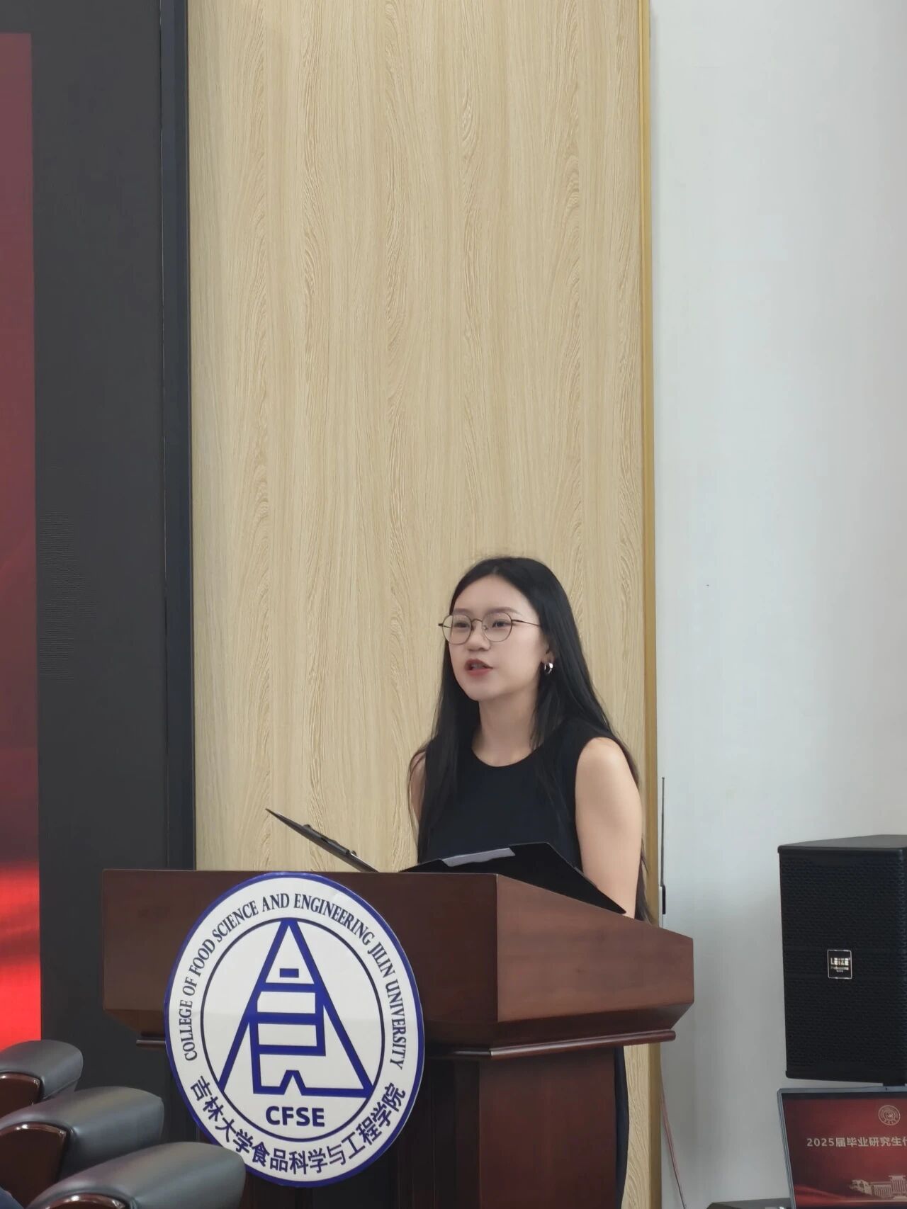 2025届毕业博士研究生代表李亚娟和本科毕业生代表林慧凯先后发言,分享了自己在专业知识学习、科研探索、社会实践中的点滴回忆与成长故事,表达了对母校、导师、同学的感激之情,并表示将秉承吉大学子“四实”品格,传承食品学院“四为”精神,在新征程中书写新一代食品学子的使命担当。